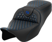 Fuel your adventurous spirit with the RoadSofa Seat - Honeycomb - Blue Stitch! Engineered with Gel-Core* and Pro-Foam*, this seat boasts a balanced compression and resilience for optimum long distance comfort. The Pro-Foam* molding process ensures water-resistant and durable foam, while the HC pattern adds modern flair. With SaddleGel* in front and rear, this seat maximizes circulation and alleviates tailbone pressure for both driver and passenger. All designed and crafted in the USA. Take the road less traveled with this bold and high-performing seat!