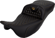 SADDLEMEN RoadSofa™ Seat - Honeycomb - Gold Stitch - Extended Reach - without Backrest - Touring '08-'24