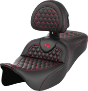 SADDLEMEN RoadSofa™ Seat - Honeycomb - Red Stitch - with Backrest - Touring '08-'24
