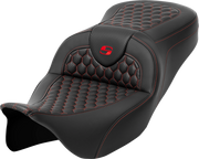 SADDLEMEN RoadSofa™ Seat - Honeycomb - Red Stitch - without Backrest - Touring '08-'24