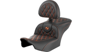 SADDLEMEN RoadSofa™ Seat - with Backrest - Lattice Stitch - Orange Stitch - Touring '23.5-'25