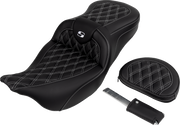 These seats are aimed at users who will lay down 500+ miles open road in a day. Large, plush double bucket seats designed to keep rider and passenger in supreme comfort during long-distance riding.