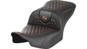 SADDLEMEN Roadsofa™ Seat - without Backrest - Honeycomb - Orange Stitch - Touring '23.5-'25
