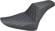 The Step-Up Seat with front lattice stitch in black for Softail '12-'17 features Ultra-Foam molded through a water-resistant, self-sealing process that enhances both comfort and durability. It expertly balances rider and passenger comfort with ergonomic design to keep the rider firmly in control. The GelCore* interior combined with Ultra-Foam provides the ideal mix of support and flexibility. Installation is simple with all hardware and instructions included. Its high lumbar design locks the rider securely in place, finished with a whisper-grain SaddleHyde* cover. Made in the USA for riders who demand bold performance.