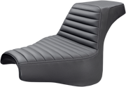 The Step-Up Seat - Front Tuck-n-Roll in Black for Softail '18-19 features Ultra-Foam molded with a water-resistant, self-sealing process that boosts durability and comfort. Designed to keep rider and passenger secure, it perfectly balances firmness and flexibility with a GelCore* interior. Installation is straightforward with all hardware and instructions included. Its high lumbar support locks you in tight, while the whisper-grain SaddleHyde* cover adds style and toughness. Proudly made in the USA, this seat demands control and confidence on every ride.