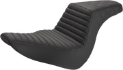 The Step-Up Seat in black, featuring Front Tuck-n-Roll and Rear Lattice Stitch, is tailored for Softail models from ’18 to ’24. Its Ultra-Foam construction uses a unique molding technique that seals the foam against water, enhancing both durability and comfort. The GelCore* interior combined with Ultra-Foam strikes the perfect balance between firmness and flexibility, ensuring rider and passenger stay secure and in control. High lumbar support locks you firmly in place, while the whisper-grain SaddleHyde* cover adds grip and style. Installation is quick and easy with all hardware and instructions included. Made in the USA for riders who demand uncompromising performance.