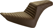 The Step-Up Seat with Front Tuck-n-Roll and Rear Lattice Stitch in Brown for Softail '11-'17 features Ultra-Foam’s advanced molding that creates a water-resistant, self-sealing foam, boosting both durability and comfort. It expertly balances rider and passenger comfort with ergonomic design to keep the rider firmly locked in control. Combining GelCore* with Ultra-Foam delivers the ideal mix of support and flexibility. High lumbar support secures the rider in place, while the whisper-grain SaddleHyde* cover adds sleek, weatherproof style. Installation is simple with all hardware and instructions included. Proudly made in the USA for riders who demand bold performance.