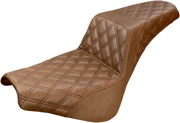 The Step-Up Seat - Full Lattice Stitch in Brown for Softail '18-'24 features Ultra-Foam molded with a water-resistant, self-sealing process that protects the foam and enhances both durability and comfort. It combines rider and passenger comfort with ergonomic design to keep you securely locked in and in control. The GelCore* interior paired with Ultra-Foam offers the ideal balance of firmness and flexibility. Installation is straightforward with all hardware and instructions included. High lumbar support keeps you firmly in place, while the whisper-grain SaddleHyde* cover adds a bold, rugged look. Made in the USA for riders who demand confidence and control.