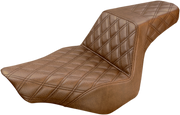 The Step-Up Seat - Full Lattice Stitch in Brown for FXSB '13-'17 features Ultra-Foam molded with a water-resistant, self-sealing process that protects the foam and boosts both durability and comfort. It expertly combines rider and passenger comfort with ergonomic design to keep you firmly locked in and in control. The GelCore* interior paired with Ultra-Foam offers the ideal balance of firmness and flexibility. Installation is simple with all hardware and instructions included. High lumbar support secures your position, while the whisper-grain SaddleHyde* cover adds a bold, rugged finish. Made in the USA for riders who demand confidence and control.