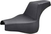 The Step-Up Seat with Gripper in Black for Softail '18-'20 features Ultra-Foam’s cutting-edge molding that creates a water-resistant, self-sealing surface, boosting both comfort and durability. It expertly blends rider and passenger support with ergonomic design to keep you locked in and fully in control. The GelCore* interior combined with Ultra-Foam delivers the ideal balance of firmness and flexibility. High lumbar support secures your position, while the whisper-grain SaddleHyde* cover adds a tough, stylish finish. Installation is quick and easy with all hardware and instructions included. Made in the USA to elevate your ride.