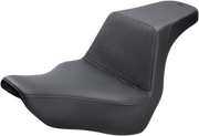 The SADDLEMEN Step-Up Seat with Gripper in black for Softail '18-'24 models delivers exceptional durability and comfort through Ultra-Foam’s water-resistant, self-skinning molding process. Featuring a GelCore interior combined with Ultra-Foam, it achieves the perfect balance of firmness and flexibility to keep the rider securely in control. Designed to enhance comfort for both rider and passenger, it includes high lumbar support and a whisper-grain SaddleHyde cover. Installation is simple with all necessary hardware and instructions included. Made in the USA for riders who demand bold style and lasting performance.
