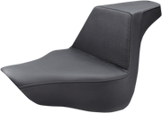 The Step-Up Seat with Gripper in Black for Softail '18-'24 features Ultra-Foam’s advanced molding that creates a water-resistant, self-sealing surface, enhancing both durability and comfort. It combines rider and passenger support with ergonomic design to keep you firmly locked in and in control. The GelCore* interior paired with Ultra-Foam offers the perfect balance of firmness and flexibility. High lumbar support secures your position, while the whisper-grain SaddleHyde* cover adds a bold, rugged edge. Installation is simple with all hardware and instructions included. Made in the USA to power your ride.