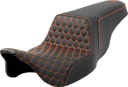 These seats are aimed at users who will lay down 500+ miles open road in a day. Large, plush double bucket seats designed to keep rider and passenger in supreme comfort during long-distance riding.