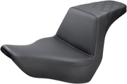 The Step-Up Seat in Black with Rear Lattice Stitch for Softail '18-'24 features Ultra-Foam’s innovative molding that creates a water-resistant, self-sealing surface, boosting both durability and comfort. It expertly combines rider and passenger support with ergonomic design to keep you firmly in control. The GelCore* interior paired with Ultra-Foam strikes the ideal balance between firmness and flexibility. High lumbar support locks you in, while the whisper-grain SaddleHyde* cover adds rugged style. Installation is simple with all hardware and instructions included. Made in the USA to conquer every ride.