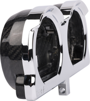 Billet aluminum face plate, Carbon fiber backing, Rubber gasket keeps the elements out, Includes 20* speedometer and instrument extension harness extension, Requires mounting bracket, sold separately, Made in the U.S.A., Accepts stock gauges only.