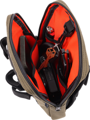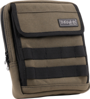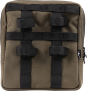 Dare to adventure with the Handlebar Bag Slim - ready for any challenge! Slim, yet expandable, it fits between fairings and gas tanks, offering versatile mounting options and ample storage. Made of sturdy 1050D nylon fabric, with a vibrant orange interior. Dimensions: 9" x 8" x 2". The front pocket features a soft microfiber lining, perfect for shades or gadgets, and MOLLE webbing for added customization. Its vertical and horizontal straps allow for various mounting configurations on risers and bars. Don't miss out on this high-quality bag with a durable YKK zipper.