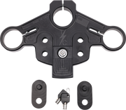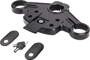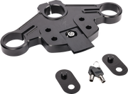 6061-T6 aluminum construction, Two bolting locations for risers: stock and 1.35* closer to the rider, Features unique concealed lock under a spring-loaded door , Riser bushings not required, Hardware included, Made in the U.S.A, Stock ignition switch must be removed and keyless ignition programming required. Can be performed at your local Harley dealership.