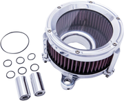 - High-flow air filter is reusable; just clean and re-oil