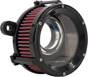 Assault Charge High-Flow Air Cleaner - Gloss Black Features a billet aluminum backing plate with hidden integrated breather system and a plexiglass outer cover, Snap-in velocity stack for improved airflow, Dyno developed and tested, High-flow air filter is reusable; just clean and re-oil, Made in the USA