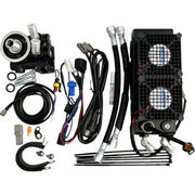 Get ready to take your riding experience to the next level with the ULTRACOOL Oil Cooler Kit! This black, naked kit is designed for Indian '14-'24 models and includes everything you need for a simple installation. A specially designed aluminum heat exchanger with turbulators and 220 CFM waterproof fans work together to drop your oil temperature up to 50 degrees Fahrenheit. With an oil adapter featuring a thermal switch and waterproof connectors, this kit automatically turns on the powerful dual fans when the oil reaches 210 degrees Fahrenheit, maintaining the ideal oil/engine operating temperature in any condition. The plug-and-play wiring harness and special oil line fitting wrench make installation a breeze. Made in the USA, this kit is perfect for those who like to take risks and want to push their bike to the limit. Set yourself apart with the ULTRACOOL Oil Cooler Kit!