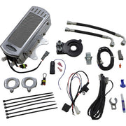 Rev up your adventure and conquer the heat with the ULTRACOOL Side Mount Oil Cooler Kit - Chrome - M8 Touring/Trike '17-'23. With a specially designed aluminum heat exchanger and sealed waterproof dual fans that produce 220 CFM of airflow, this powerful kit can drop your oil temperature up to 50 degrees F! Simply plug-and-play with the included relay and waterproof connectors, and get ready to rule the road. Plus, with the LED indicator light and detailed instructions, installation is a breeze. Take the risk and add this complete kit to your bike today!