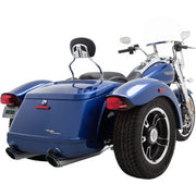 These Twin Slash Slip-On Mufflers in chrome are crafted specifically for the Harley Freewheeler '15-'16, trimmed shorter to perfectly suit its compact frame. They deliver a bold, deep rumble whether paired with stock headpipes or Vance & Hines power dual or dresser dual head pipes. Finished with the iconic twin slash end design, they bring both aggressive style and powerful sound to your ride.