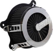 Laser-cut stainless cage fighter cover, High-capacity, deep pleated, & washable air filter element, Force* Velocity Stack for a strong increase in power, Features a large inlet backing plate and billet venturi, Made in the USA