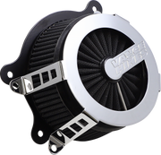 Laser-cut stainless cage fighter cover, High-capacity, deep pleated, & washable air filter element, Force* Velocity Stack for a strong increase in power, Features a large inlet backing plate and billet venturi, Made in the USA